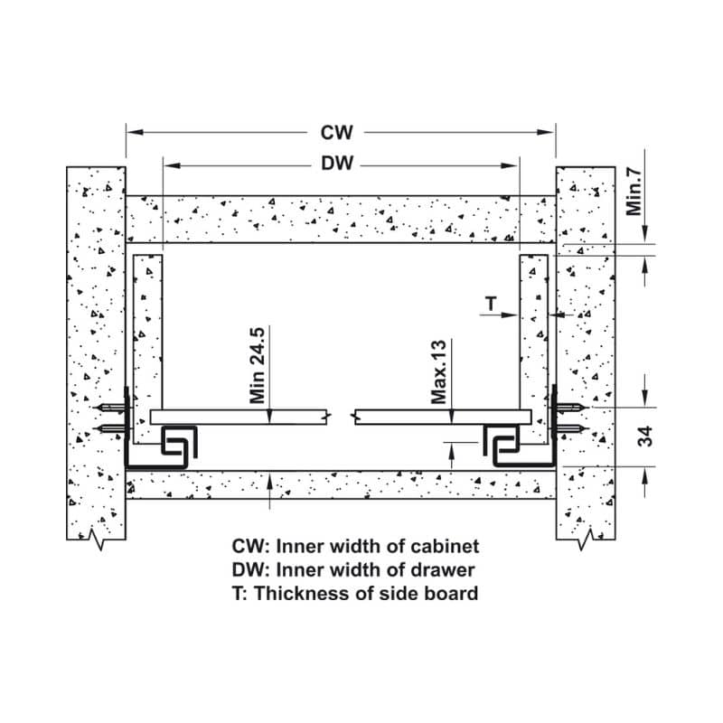 Thông số kĩ thuật của Ray âm giảm chấn EPC EVO mở 3/4 500mm Hafele 433.32.505