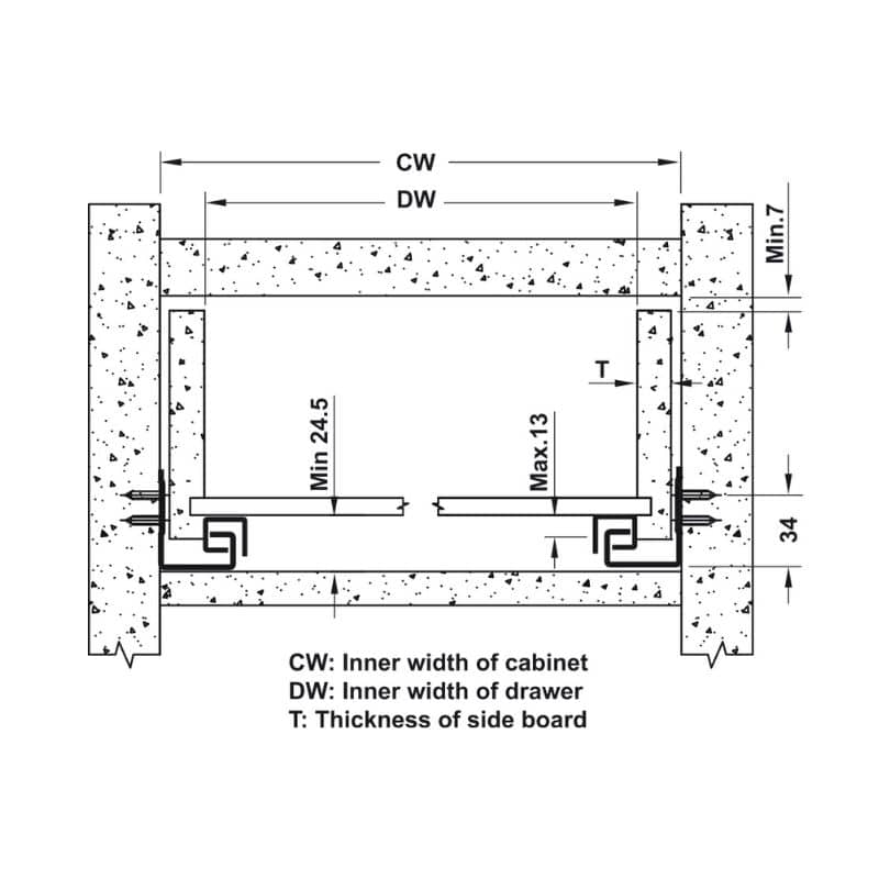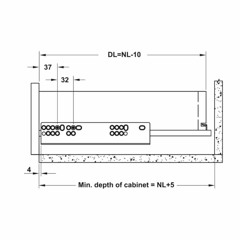Thông số kĩ thuật của Ray âm giảm chấn EPC EVO mở 3/4 550mm Hafele 433.32.506